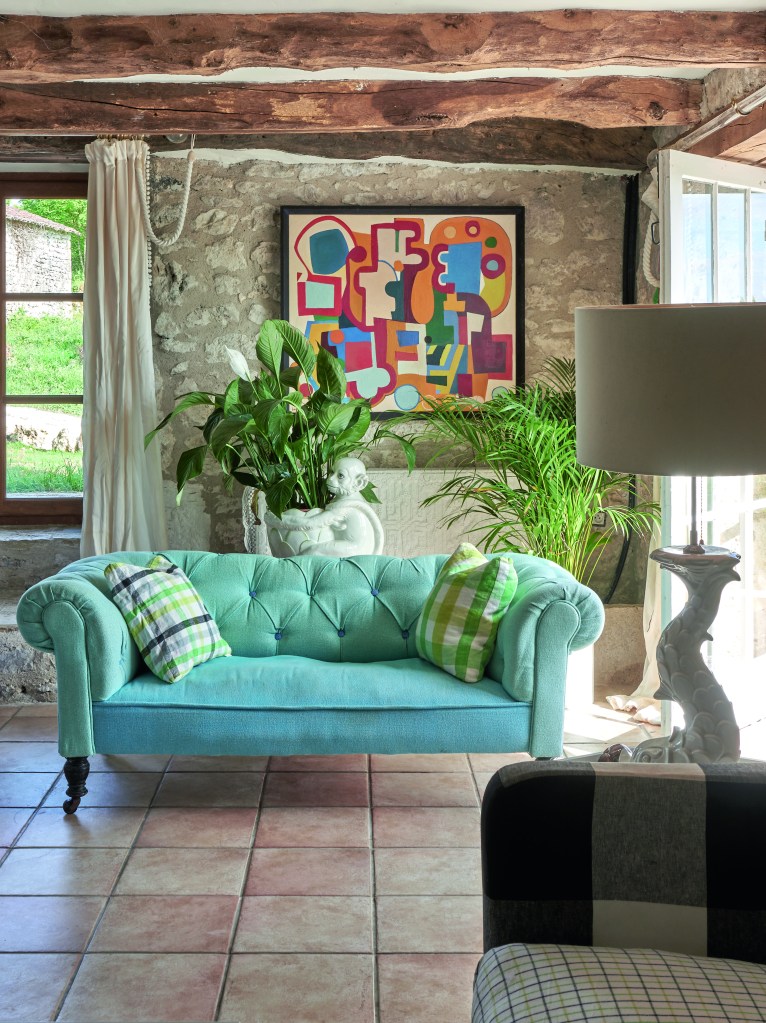 Décor in my homes in the UK has always been so minimal, bar the art, which I must have around me to inspire me to work. Everything must be clean and white and all clutter tucked away, then I can function. Haute Caussine is the opposite. It is full of colour, on everything – from the plates, which were hand-painted in Mallorca, the colourful upholstery of the furniture and my Missoni bed linen. I can’t get colour enough in France and can’t have any homes I’ve had in the UK!
